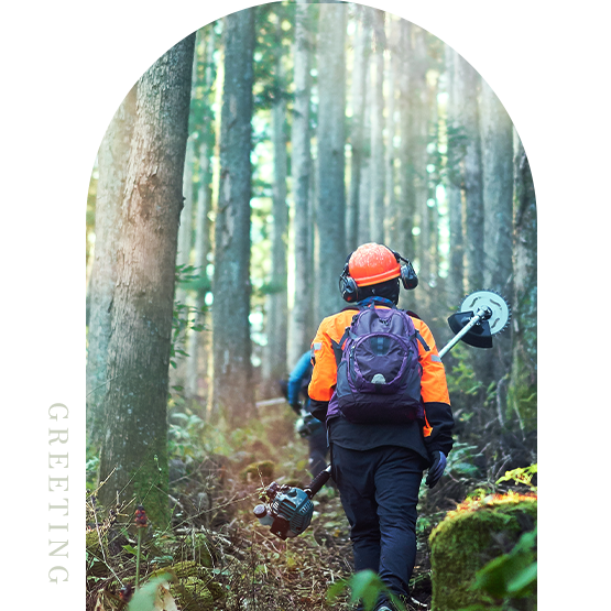 株式会社○○林業では、発注いただく方々、従事される方、すべての方から感謝していただける仕事を行うべく、最大限の努力を惜しまず業務にあたっております。
